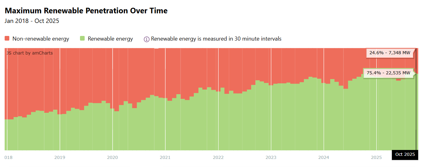If you look back at the timeline, Australia’s clean energy climb has been fast. The NEM’s seven-day renewable average only crossed 20% in 2018. By late 2019 it rose to 30%, by 2022 it was above 40%, and now we’ve hit 50%. That’s a massive shift in under a decade, and it reflects both rooftop solar adoption and utility-scale wind and solar farms coming online.